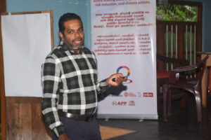 Technical facilitation was led by the National Building Research Organisation (NBRO), with support from the District Disaster Management Coordination Unit (DDMCU) – Hambantota and the National Disaster Relief Services Centre (NDRSC). Expert sessions covered landslide risk identification, resilient housing design, construction techniques, and relevant policy and technical guidelines. Participants actively engaged in hands-on exercises and interactive discussions, reinforcing learning through practical application.