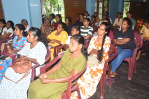 The session focused on raising awareness on community-based early warning systems, landslide risks and preparedness, evacuation and relocation policies, and available social protection schemes, with particular emphasis on vulnerable communities in Thalapathkanda, Dehigahahena, and Pathegama. Around 85 participants attended the workshop, with women representing approximately 60% of total participation. Participants included community members from high-risk Grama Niladhari Divisions, alongside relevant local-level government officials and civil society representatives.